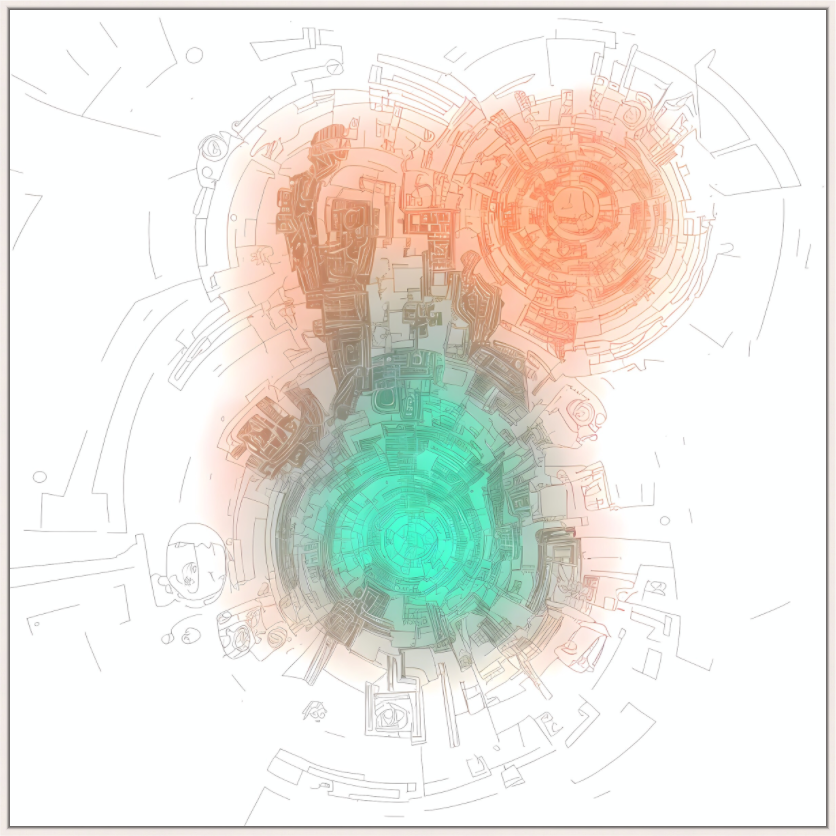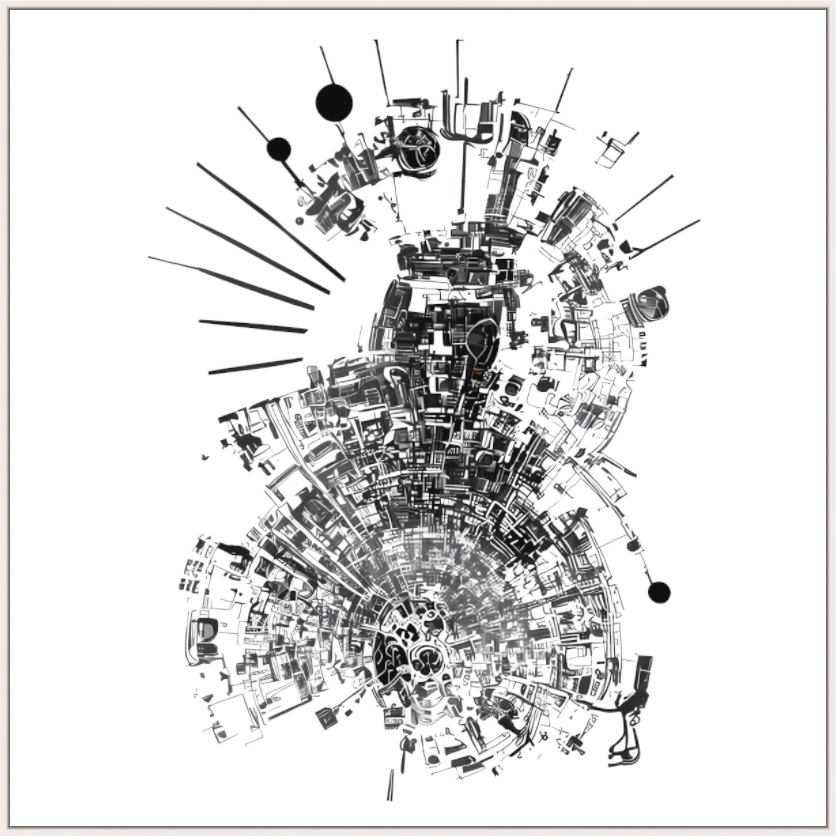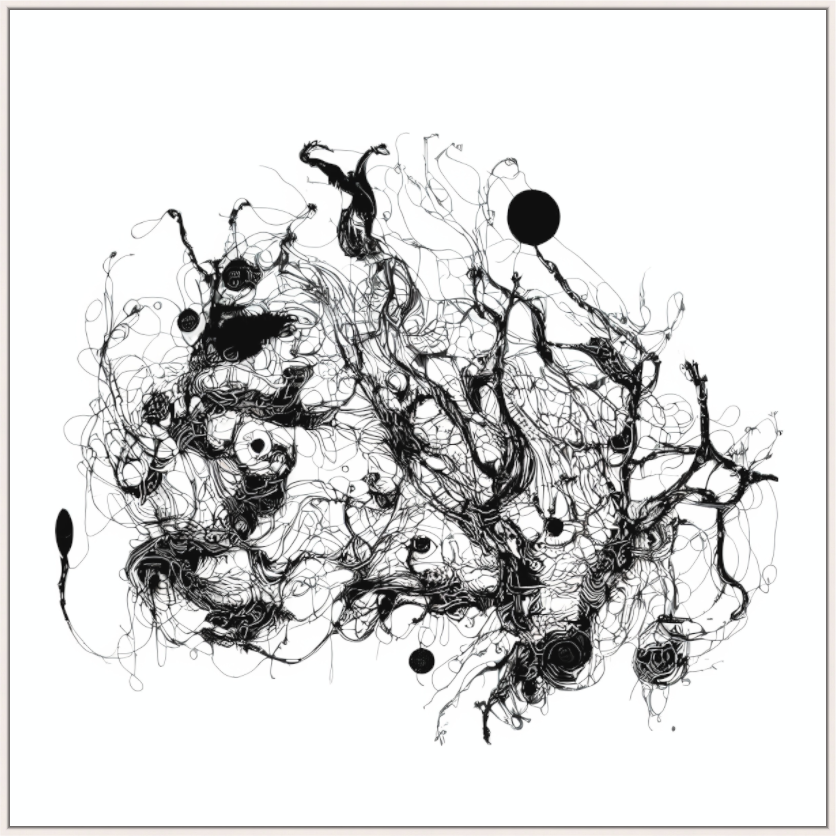 - Generating from a Principal Sketch: The project begins with a hand-drawn ink sketch, a spontaneous imprint. This sketch is fed into Stable Diffusion and ControlNet to generate initial iterations of the sketch. By keeping the input image constant, the system gradually builds upon the underlying visual structure, offering new interpretations at every step.
