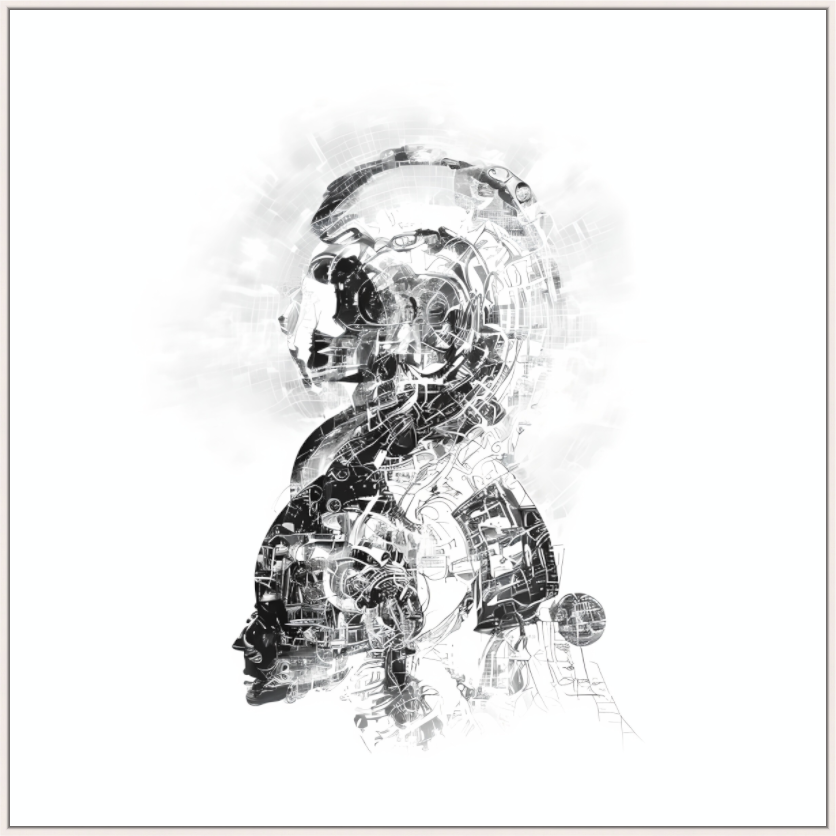 - Selecting Process: Using a single prompt—intergalactic frequencies—the model produces a wide array of images over several weeks. From these, images are selectively chosen based on emergent aesthetic patterns. Interestingly, after several iterations, the model began to develop consistent facial structures, which were further enforced through parameter tuning and selective feedback loops.